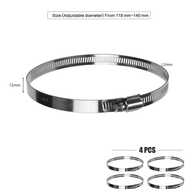 4 Pack Jubilee Clips Large Size 118-140 mm, Jubilee Clips Hose Clips Stainless Steel Hose Clamp Adjustable Ducting Clamps for Securing Hoses and Pipes Tube
