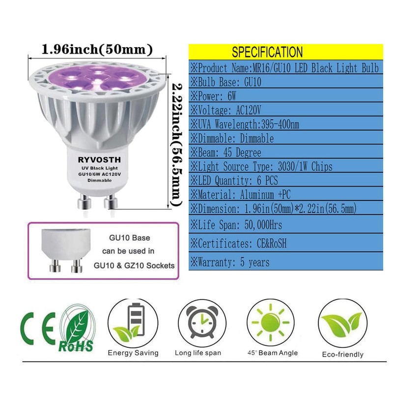 • 【Excellent Performance】Design with 6pcs 1watt high power LEDs, 45 degree Optical Lens, higher Lumen out put per watt than other blacklight bulbs, super bright!