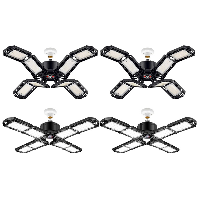 4 Pack LED Garage Light, Super Bright Screw in E26/E27 Ceiling Shop Work Lamp, 200W 20000 Lumen Deformable Basement Bulb Fixture with 8 Adjustable Panels
