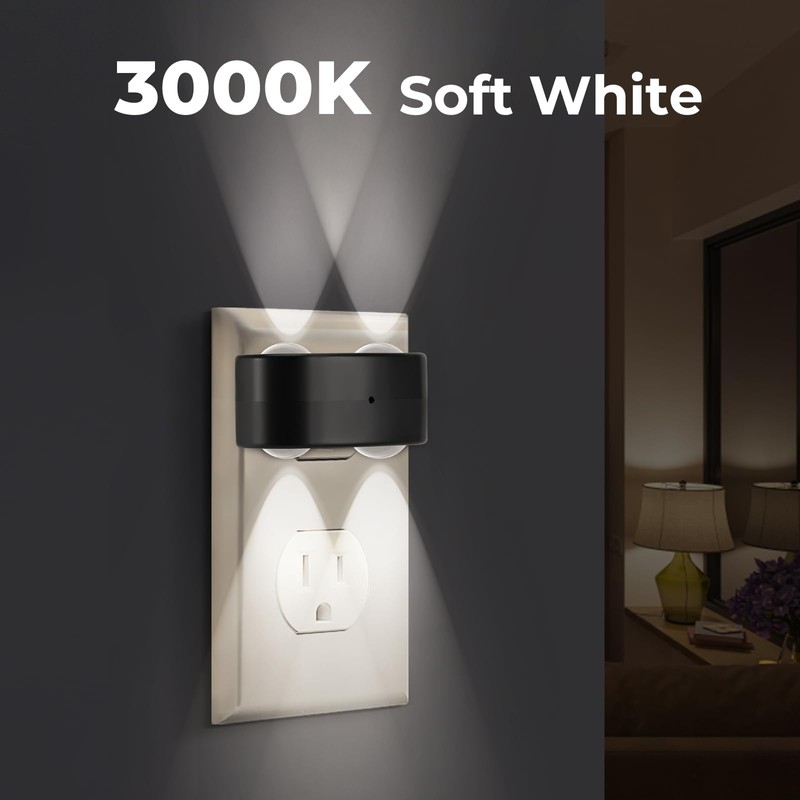 - 🤖 Smart Auto-Dimming Light Sensor: Features an advanced light sensor that automatically turns the plug in night light on at dusk and off at dawn. It intelligently adjusts brightness based on the surrounding ambient lighting, saving energy and providing hands-free convenience.