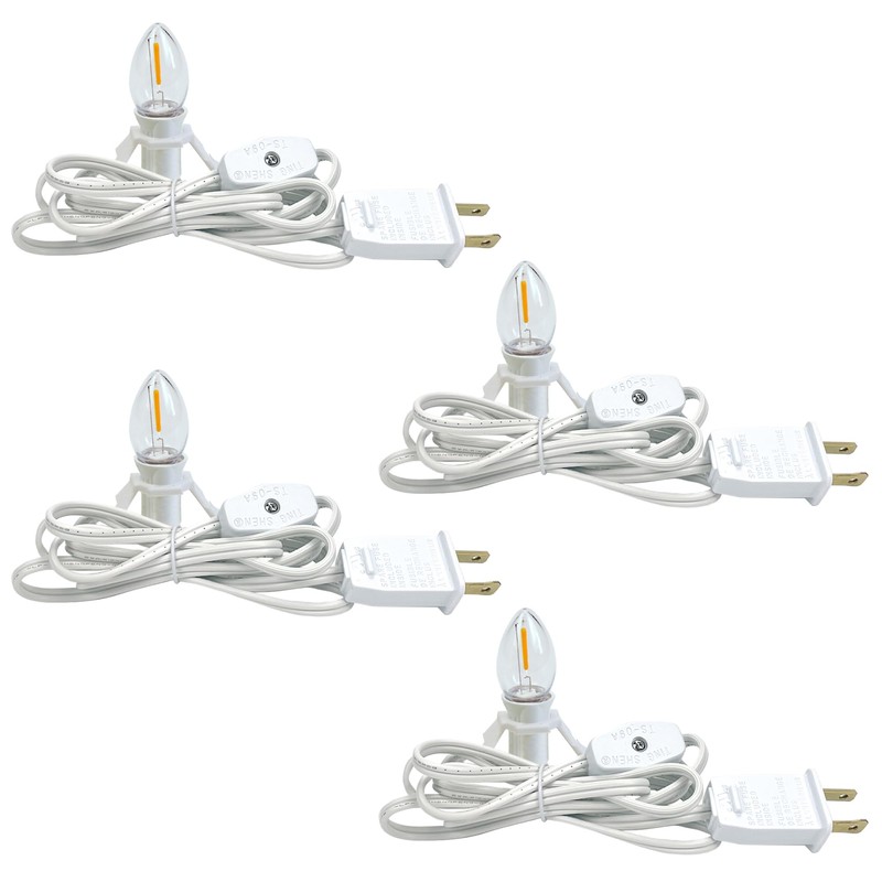 4 Pack Lights Accessory Cord with 4 C7 Led Light Bulb, Clip-in Lamp Cord Replacement, Candelabra-Base E12 Socket White Cord with On/Off Switch Pluggs for Holiday Decorations