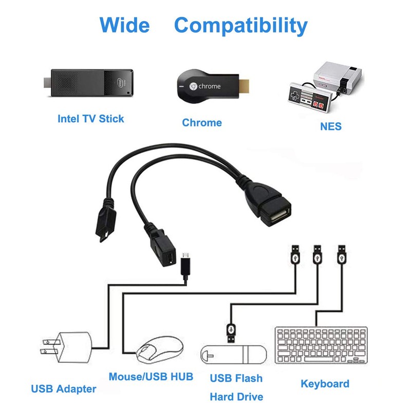 - 2-in-1 Powered Micro USB to USB Adapter (OTG Cable + Power Cable)