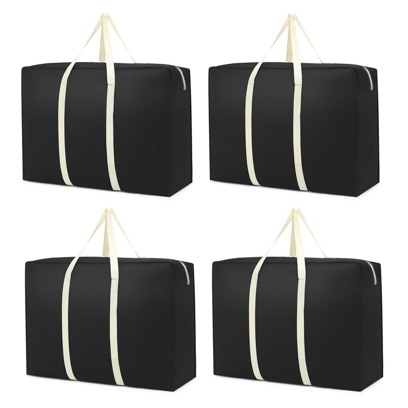 4 Pack Moving Bags, Oxford Moving Bags, Heavy Duty Extra Large Storage Bags, Storage Totes Packing Bags with Strong Handles for Moving, College Dorm, Traveling,Comforters, Clothes (Black)