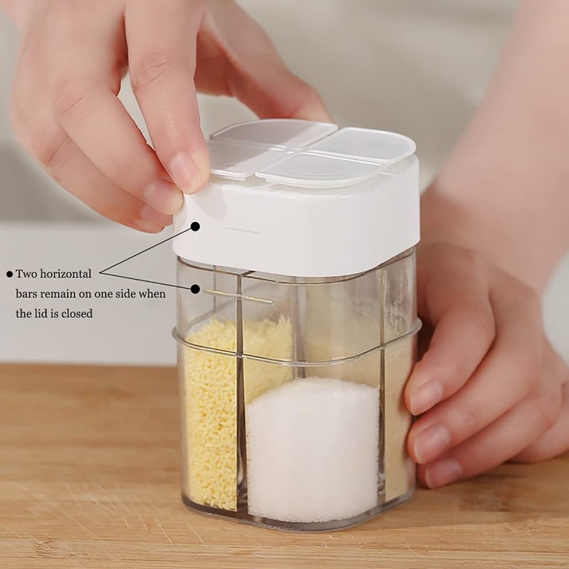- Spice dispenser size: 8.5 x 6.5 x 6.5cm/ 3.3 x 2.5 x 2.5 inches; And with 4 compartments to store 4 different kinds of seasoning at the same time.