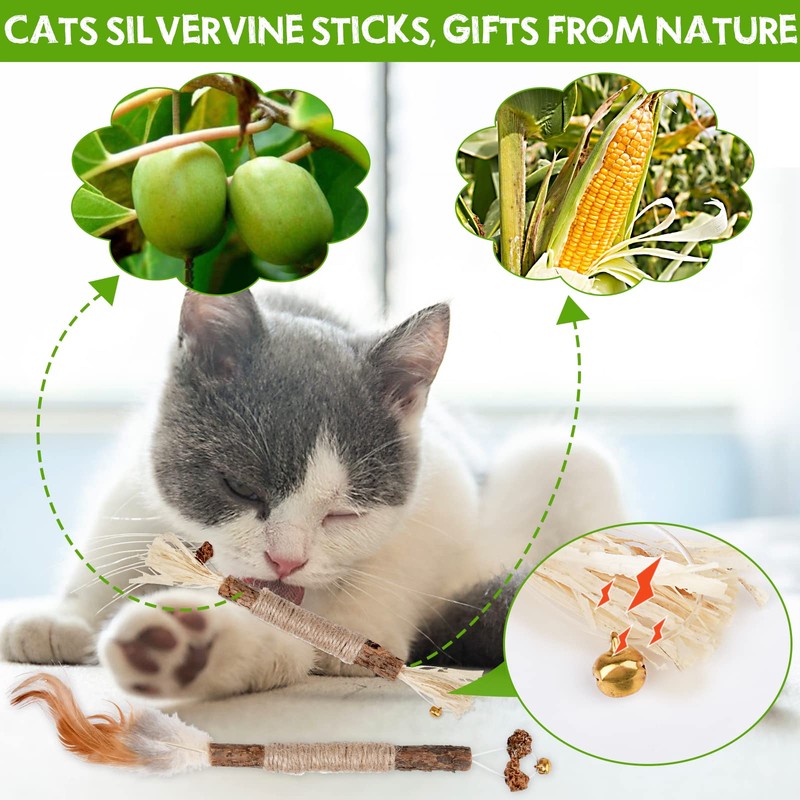 - SAFE- Catnip toys for cats are made of silver rattan sticks, silver rattan edible fruits, corn husks and twine, cat chew toy from nature, no additives and kitten friendly.