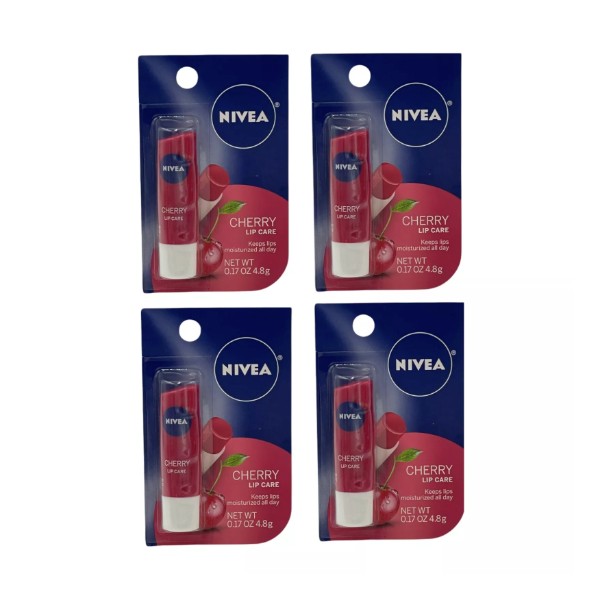 4 Pack Nivea Cherry Lip Care Tinted Scented Shea 0.17 oz Moisturize Hydrate