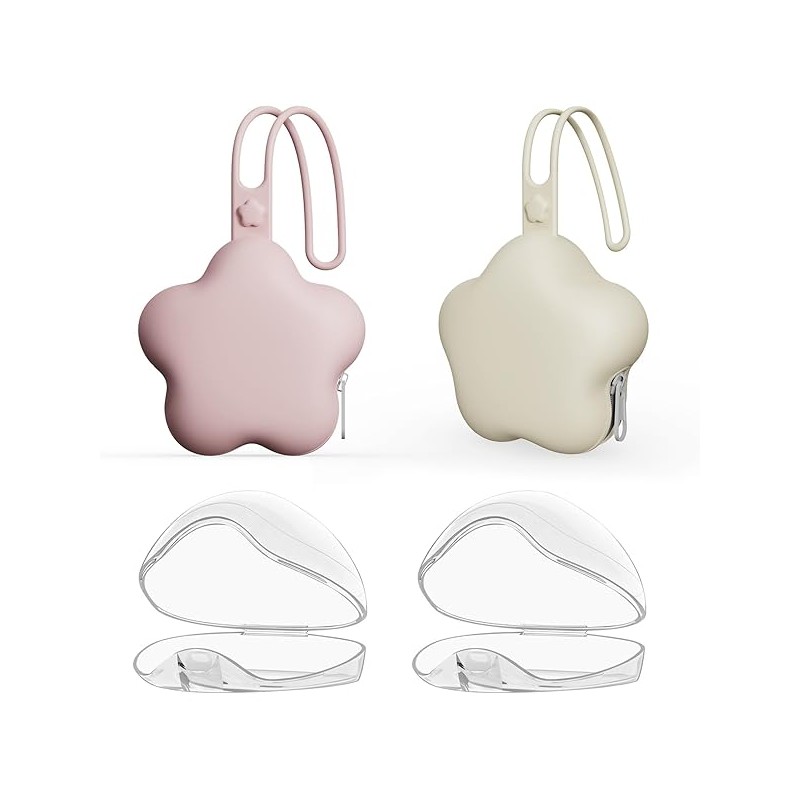 4 Pack Pacifier Holder Case,2pcs Silicone Portable Pacifier Pouch and 2pcs Transparent Nipple Holder Case Container, On-the-GO Pacifier Storage Container Box,BPA Free, Easy to Clean(Pink+Khaki)