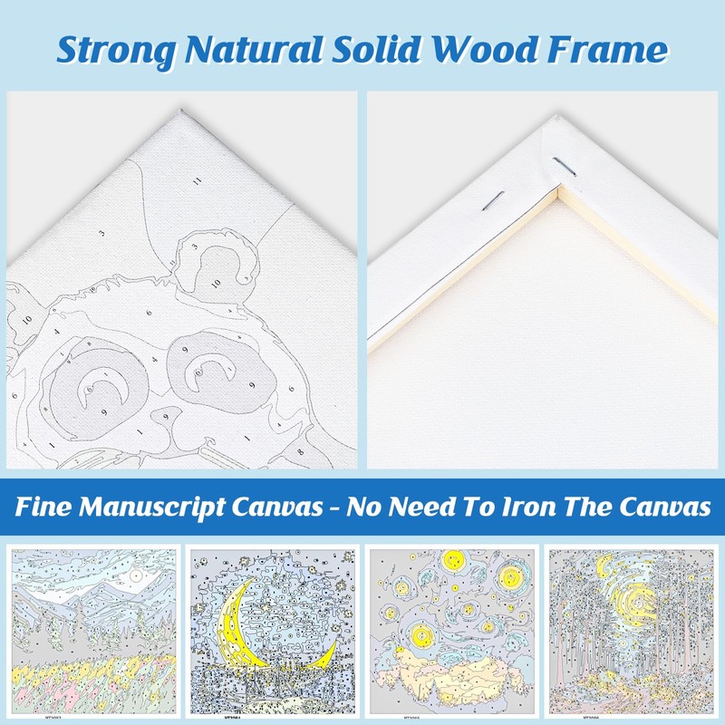- 【High Quality Acrylic Pigments&Canvas】Our paint by number canvas uses high-definition color canvas and healthy acrylic paints. The number area is easier to distinguish, and paint is easier to adhere to it. Colored canvas can prevent eyestrain and make painting easier.