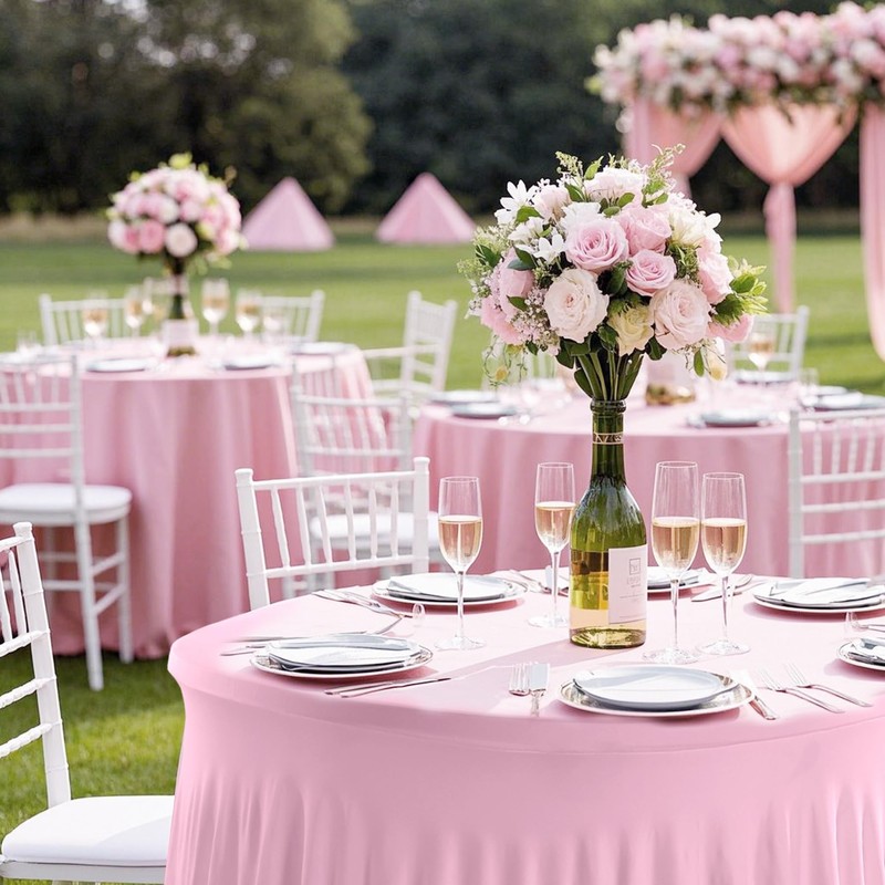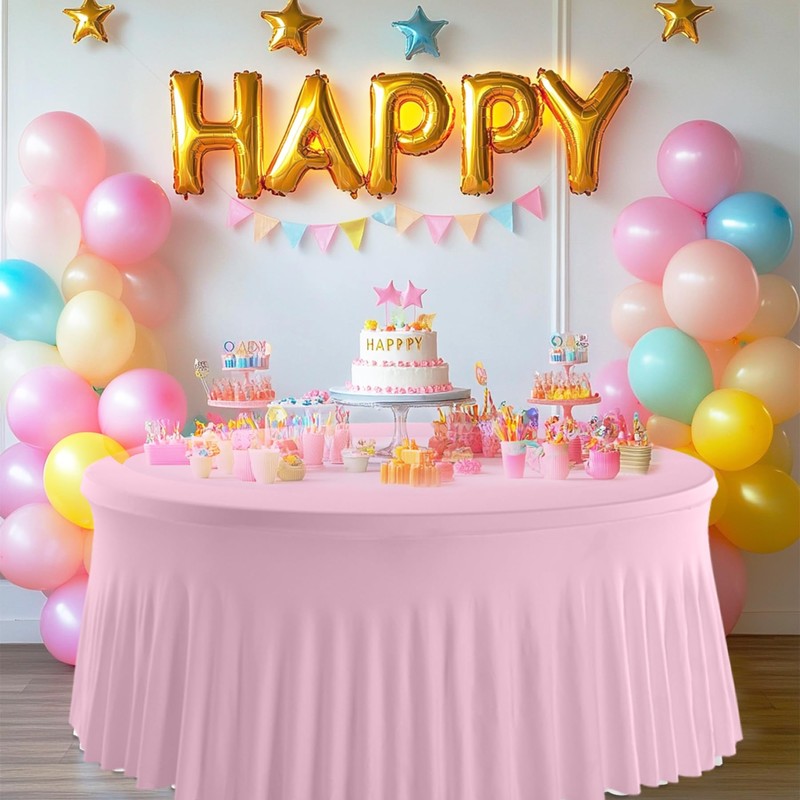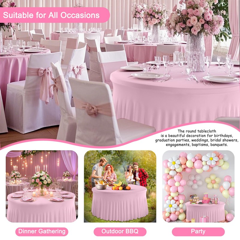 • 【Premium Quality】: This pink table cover with table skirt, made of sturdy spandex fabric, showcases a beautiful skirt design. The pink round tablecloths offers excellent table protection while enhancing its aesthetic. Combine it with balloons, flowers, and LED lights for a chic and luxurious look.