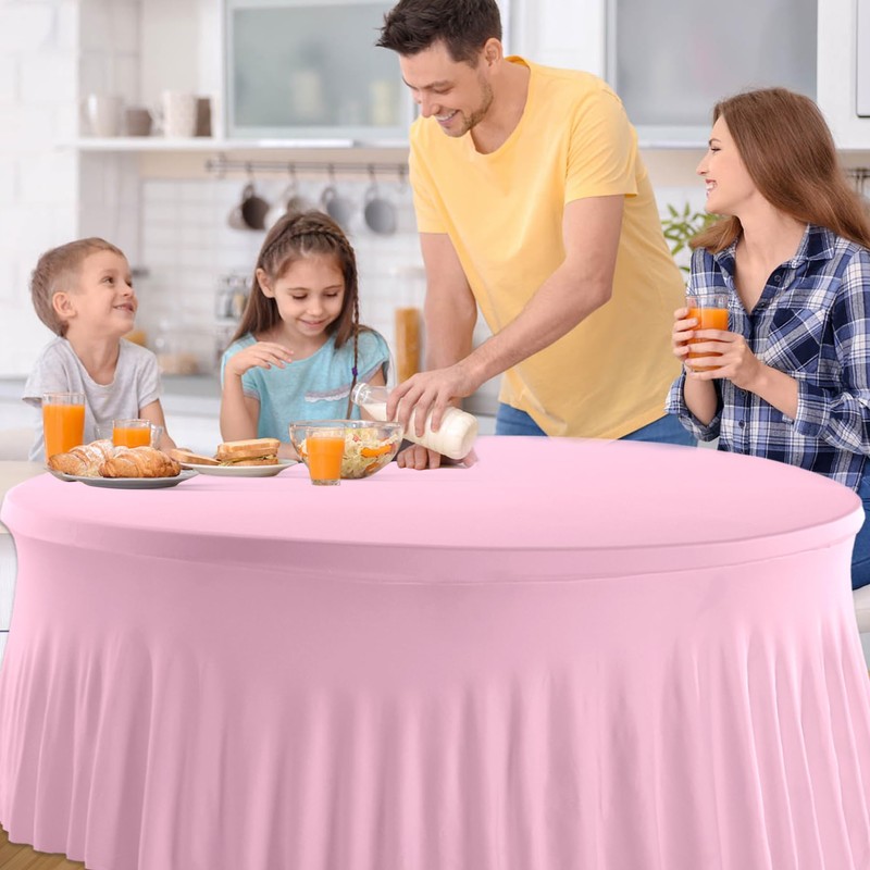 4 Pack Pink Round Tablecloth, Pink Tablecloths for 6ft Tables, Elastic Stretc...