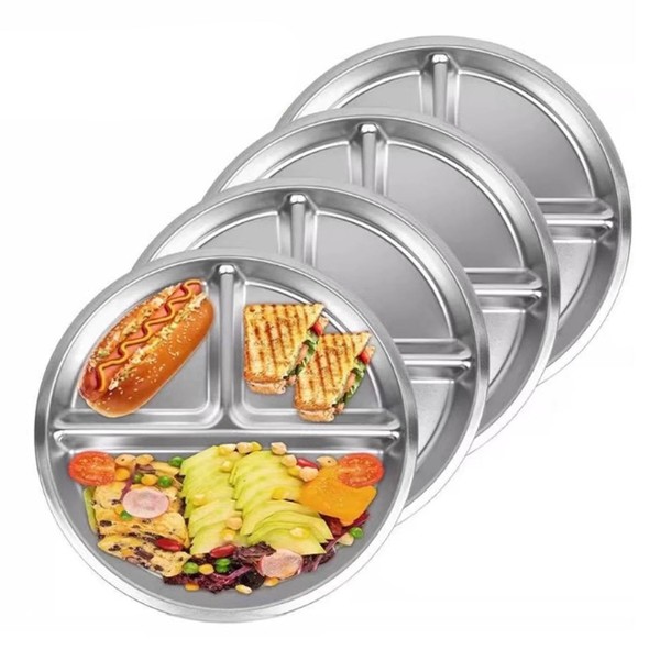 4 Pack Portion Control Plate with 3-Compartment,Unbreakable Portion Plates for Diet Food,Stainless Steel Plate for Adults Kids, Camping, Lunch and Dinner,9"x 9"