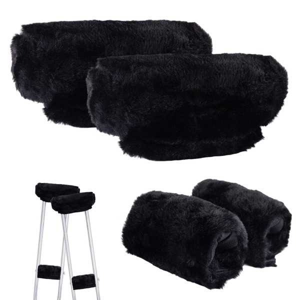 4-Pack Premium Fluffy Crutches Padding, Ultra-Soft Breathable Crutch Pads for Armpits and Hand Grips, Machine Washable Crutch Cushions, Comfort Fit for Adults and Youth (Black)