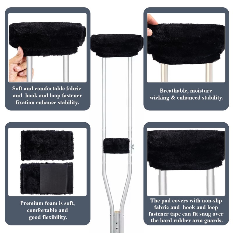 - Ultimate Comfort for Crutch Users: Upgrade your crutches with our black crutch accessories set, designed to provide maximum comfort for both your underarms and hands. This 4-piece padding for crutches set includes crutch pads for armpits and hand grips, ensuring a cushioned experience that reduces pressure and fatigue. Whether you're recovering from an injury or need long-term support, these pads for crutches are a game-changer for daily use