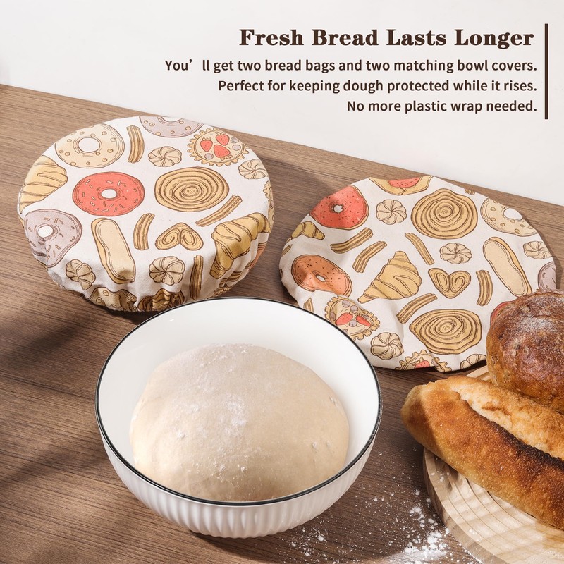 - 【Includes Two Bread Bags and Two Proofing Bowl Covers】Each purchase comes with two premium bread bags and two bread proofing bowl covers. These sourdough proofing covers and bowl covers for bread proofing are perfect for protecting your dough during fermentation, eliminating the need for plastic wrap or disposable covers. They match perfectly with your bread bags and are ideal reusable bowl covers. Plus, they also work great as reusable toaster bags!