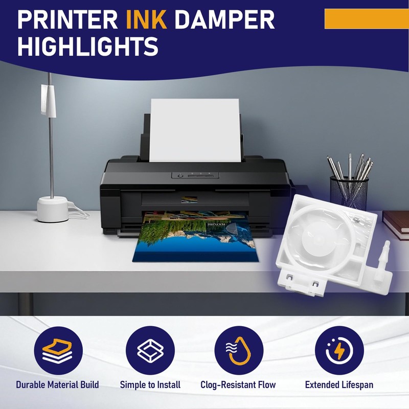 - Wide Compatibility: This printer ink damper is compatible with E-pson printer models P408, R1390, L1800, L1400, R2000, R2400, L1300, T50, L805, and DTF printers. Suitable for multi-color ink cartridge systems used in home, office, and industrial printing. Designed to fit for E-pson photo printer setups. Always confirm your model before purchase.