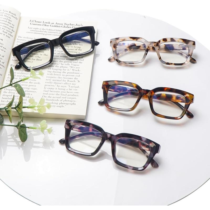 Function: *Blue ray blocking - It can absorb high-energy blue light. *Clear lens - The lens has high light transmittance. Less reflective, no affect reading, and almost no color difference. * UV protection- Anti blue ray lens protect the eyes from ultraviolet radiation and block UV400. Perfect Readers for men women reading, video gaming and computer reading. Package Content: 4 xBlue Light Progressive Multifocus Reading Glasses, 4 x Soft pouches, 1 x Cleaning Cloth. All packaged in a mail box! The womens fashion glasses is made of extremely lightweight and strong PC material that does not compress the nose or clamp the head. Polycarbonate Lens to be sure that colors are true and undistorted,provides the perfect balance between eye protection and viewing quality.Stylish square frame design can perfectly match various face shapes. In short,it is a high quality readers that can be shared with family, friends or partners.