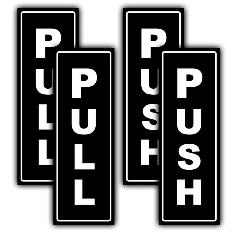 4-Pack Push Pull Waterproof Vinyl Stickers for Doors & Windows, 148mm x 50mm