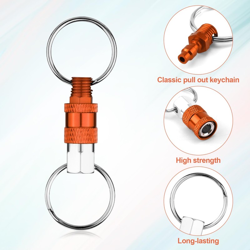 4 Pack Quick Release Keychain, Pull Apart Keychain Detachable Key Rings Aluminum Keychain Quick Release with 2 Split Rings Chain Separate Quick Disconnect Accessory Gift (Orange and Silver)
