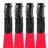 **Features:** <1>This red flashlight is equipped with powerful 3535 RED LED bulb, it emits the red light in the wavelength of 620nm-625nm. <2>The animals' eyes is insensitive to Red Light, so, this red light flashlight is the helpful tool for hunting and night observation, with red led flashlight you can you can find the animals without disturbing them. So, this night light flashlight is very helpful to find the animals in the dark, help you watch turtle, snakes, and the reptiles, also this red hunting light can help you hunt the games like hogs, coyotes, fox. <3>This red light flashlight is also a very helpful tool for Astronomy and Aviation, with it on reading charts, checklists, or other documents. With this night version red aviation light, aviators, astronomers who want to retain their night vision would benefit from this red LED flashlights. <4>This red flashlight is 3 Mode flashlight: High, Low, Strobe.<1>With high mode you can have the powerful red light.<2> With low mode you can have energy saved.<3>With Strobe mode you can use it for riding and signal sending and warnings; Pull the head of the flashlight forth, you can have the light zoom out, the red light beam will shoot 150 yards far. <5>FOUR flashlights are included in the package. The flashlight can be powered by 1 x AA battery (battery are not included in the package). **Specification :** Blub: 3535 RED LED Light Wavelength: 620nm-625nm Output Luminous: Flux 200 lumens Mode: 3 Mode,(High, Low, Strobe) Battery Configuration:1xAA battery(battery is not included) Flashlight House Color: Black Weight: 65g/2.29OZ Size(Length*Diameter): 3.5"*0.9"/9CM*2.CM Material: Aluminum Alloy **Package include:** 4 X red light flashlight 1 X User manual
