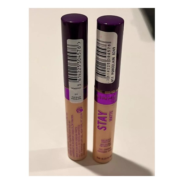 4 PACK RIMMEL STAY MATTE #011 PORCELAIN CONCEALER .23 FL/OZ EA .92 FL/OZ TOTAL