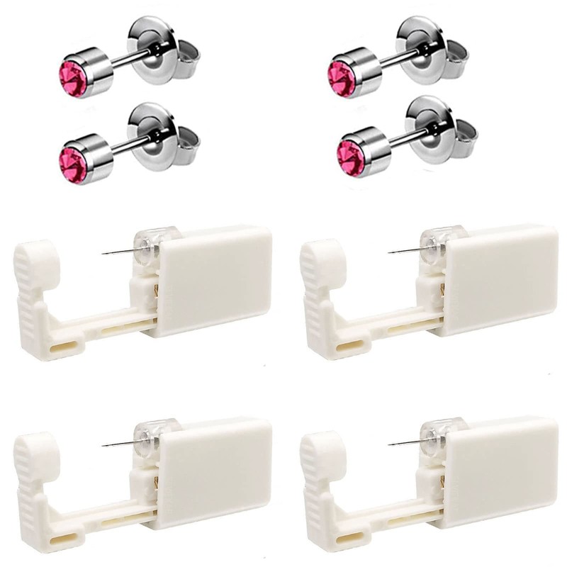 4 Pack Self Ear Piercing Gun, Disposable Self Ear Piercing Gun Kit with Earring Studs Safety Ear Piercing Gun Kit Tool (Pink)