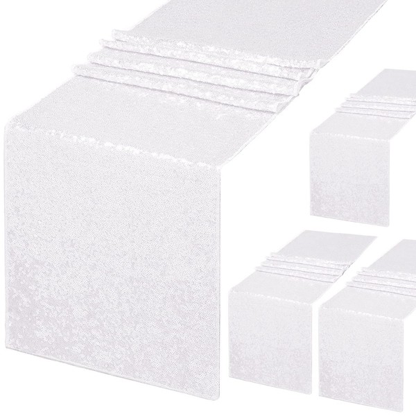 4 Pack Sequin Table Runner 14x80 Inch Wedding White Runner for Rectangle Tables Sequin Glitter Party Decorations