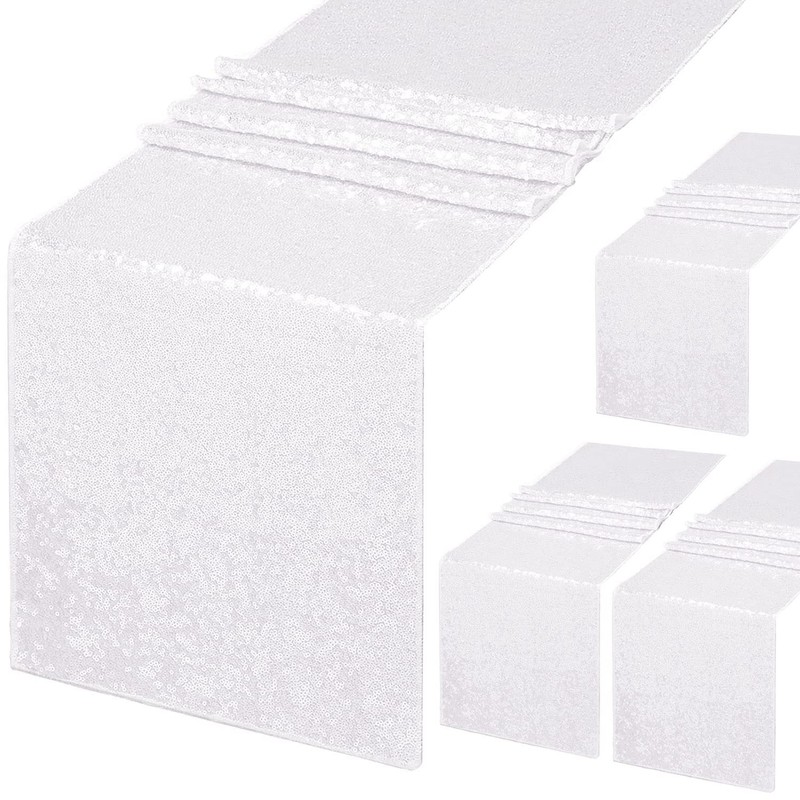 - White Table Runner: 4 pack sequin table runners measures 14"x 80" in each size, appropriate for a table that can seat 8-10 people