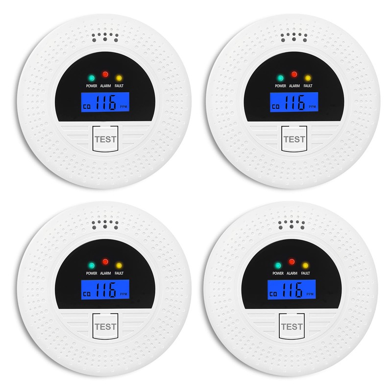 - Digital Display and LED Alerts: Carbon monoxide detectors/smoke alarm with LCD displays. When a danger is detected, the display shows data and flashes a red LED