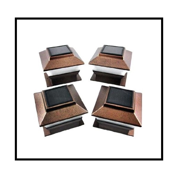 4-Pack Solar Copper Finish Fence Post Cap Lights With 1 Big White 10mm LED