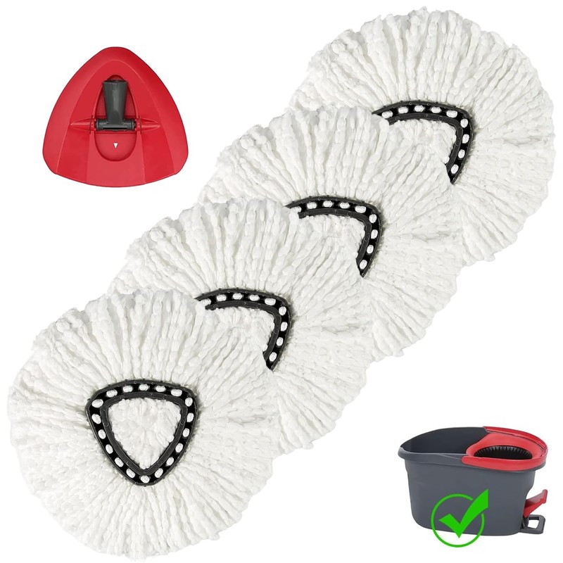 - 【Fit for Triangle Spin Mop】: Includes 4 pack replacement mop heads and 1 base. Installation as easy as original which is easily detach and snap on perfectly! NOTE: Fit for 1-Tank system only. Not compatible with 2-Tanks Rinse Clean system.