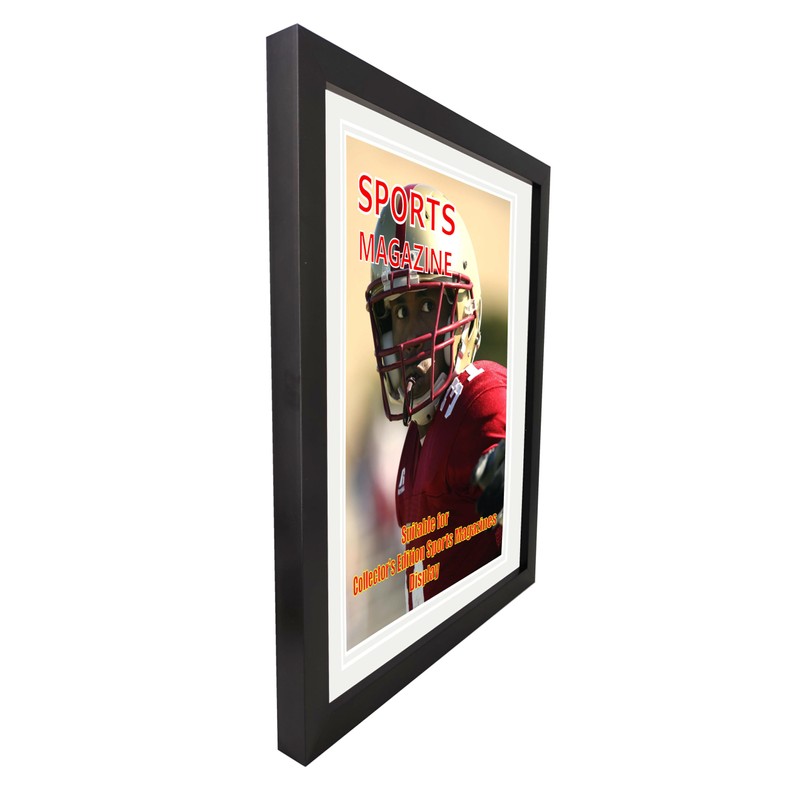 4 Pack Sports Magazine Frame Fits Measuring 8.5 x 11.25 or 8.25 x 11 Inch Magazine Display Frame with Installed Hangers and Double White Core Matting Wall Hanging