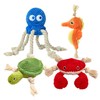 4-Pack Squeaky Dog Toys Durable Puppy Plush Toy Interactive Chew Stuffed Toys of Rope Dog Tug of War Toy & Oral Care Puppy Toys Set: Octopus, Crab,Seahorse,Turtle Pet Toys for Small to Large Dogs