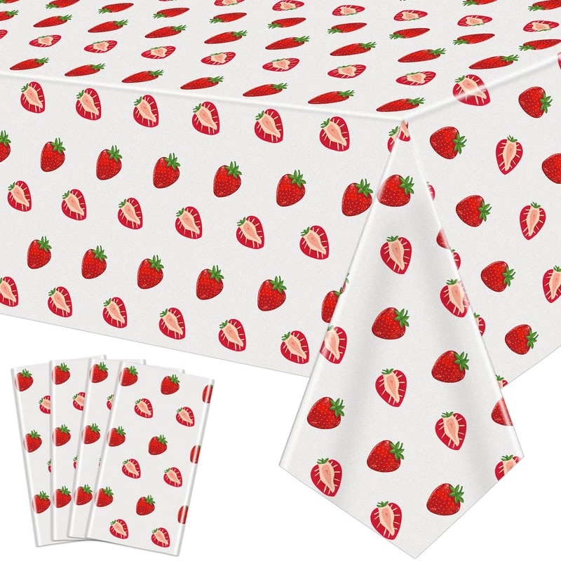 - Package Includes: 4 pack of strawberry theme birthday party table cover, each of the sweet one birthday tablecloth measures 86.6 x 51.1 inch / 220 x 130 cm. It is big enough to cover the most rectangular table, and can be cut to better fit smaller-sized tables as well. They are enough to meet your daily usages and replacements, creating a kind of summer atmosphere, vibrant and enthusiastic, make your party funny, attractive and memorable for your guests and friends.