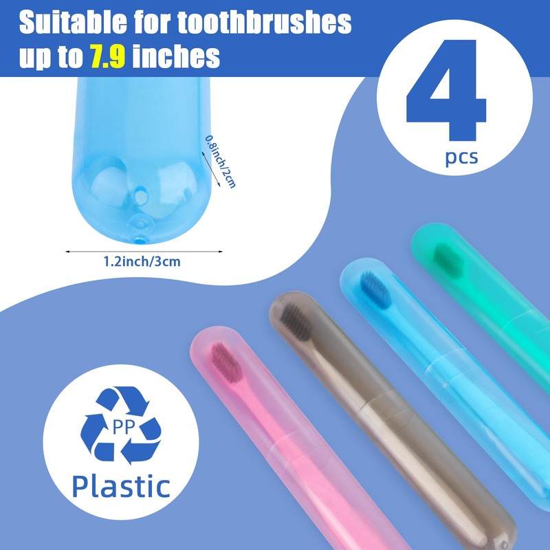- 😊Package Include: You will get 4 pcs plastic toothbrush cases with different colors (Blue, Pink, Gray, Green). Each toothbrush cover is 7.9 x 1.2 x 0.8 inch(L x W x H). It's great for your family as everyone can have their own toothbrush covers with its own color