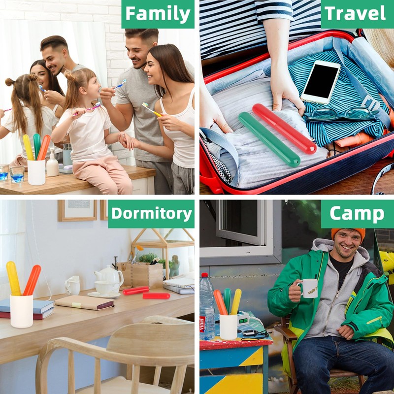 - Package Include: You will get 4 pcs plastic toothbrush cases with different colors (yellow, orange, red, green). Each toothbrush cover is 7.9 x 1.2 x 0.8 inch(L x W x H). It's great for your family as everyone can have their own toothbrush covers with its own color