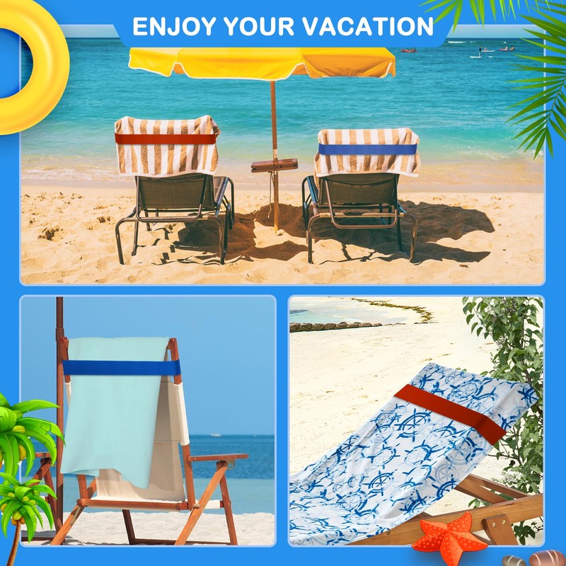 - Prevents Towel Slippage: Towel bands hold your towel securely in place, preventing it from sliding off your beach chair or blowing away in the wind.