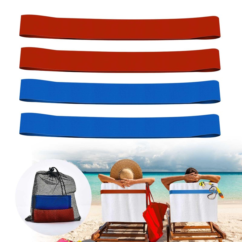 4 Pack Towel Bands for Beach, Pool & Cruise Chairs, The Better Towel Chair Clips Towel Holder Beach Towel Clips (2 Pack Blue+2 Pack Red)