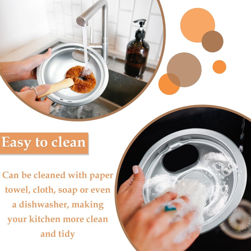 - 【Install and Clean】: Please unplug power source of the electric furnace and wait until the surface touches cool before installing the drip pan. Remove the element from the stove top and take out the old drip pan. Then insert the new drip pan and make sure it aligns with the location of the inserted element. Finally reinsert the element. The drip pan is non-stick and easy to clean, it can be cleaned with paper towel, cloth, soap or even a dishwasher, making your kitchen more clean and tidy.
