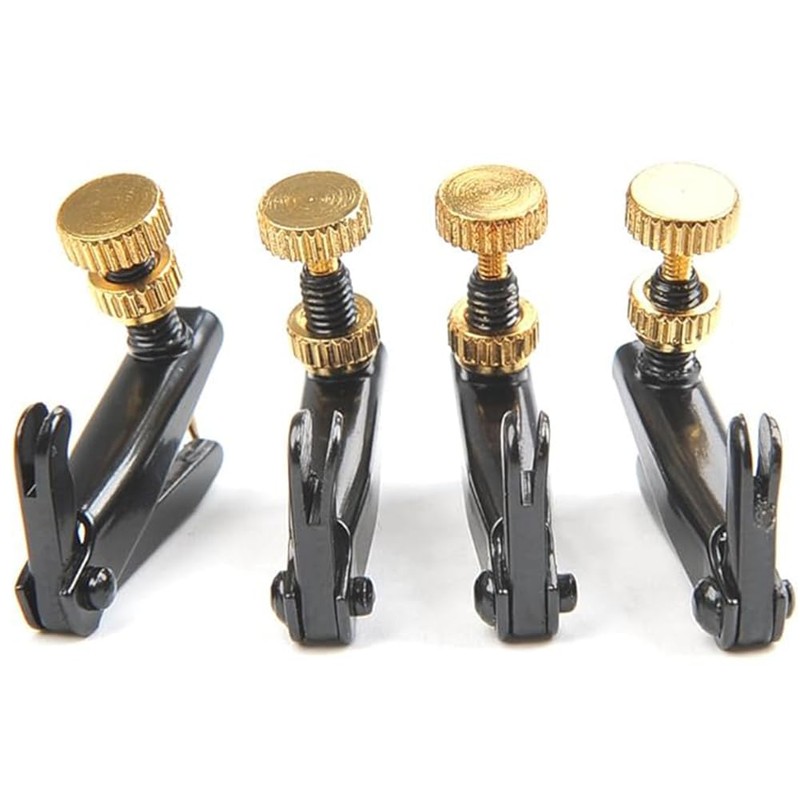 4 Pack Violin Fine Tuners,for 4/4-3/4 Violin,Metal String Adjusters,Nickel Plated,Anti-Rust,Black and Gold Design,Easy to Install,Strong and Durable for Long-Lasting Performance