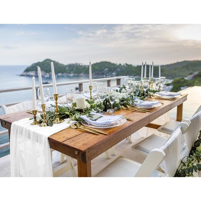 1.Cheesecloth table runner has an elegant appearance with natural wrinkles. It presents a semi transparent visual effect, which is an excellent desktop decoration