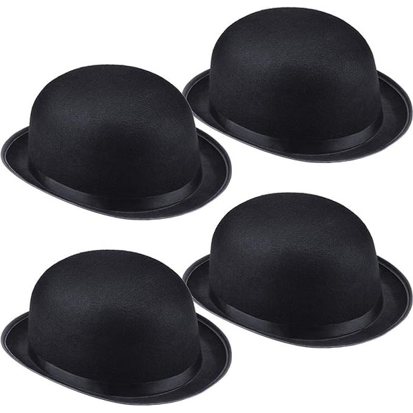 4 Packs Funny Party Hats Black Felt Derby Light Bowler Top Hat Costume Accessory for Kids and Adults Unisex