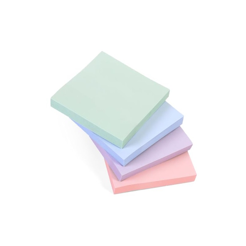 4 Pads Dusk Pastel (Square) Sticky Notes, 100 Sheets Per Pad 76 x 76 mm (3" x 3") | Light Pastel Colours Purple, Pink, Green, Blue | Delicate Colours for Gentle Memos, Journals, and Creative Planning