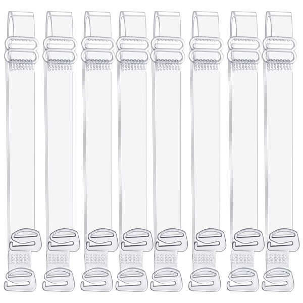 - Package Includes: 4 Pair Clear Bra Straps with solid clear buckle. Our Transparent Bra Straps is 12mm in width. Natural length is 14.2in/36cm. Length Adjustable and easy to use, can be stretched to 23.6-25.6in/60-65cm.