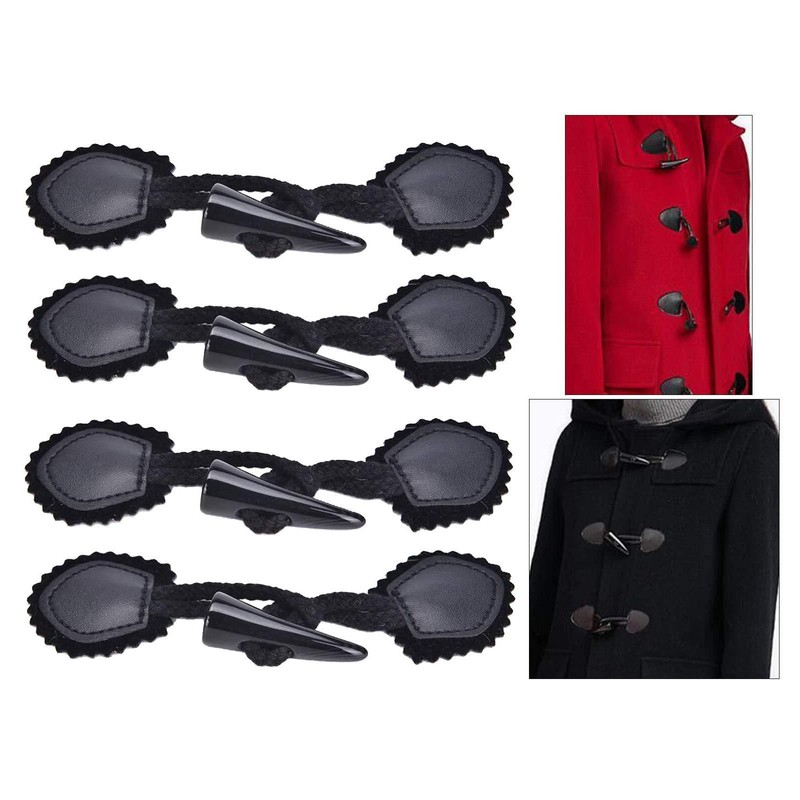 4 Pairs Leather Horn Toggle Closure Buttons Coat Jacket Duffle Shawl Clothes Sewing DIY Apparel Crafts - Black,Toggle Buttons
