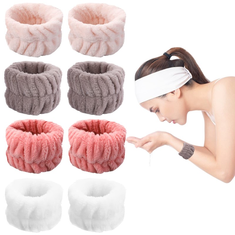 4 Pairs Microfibre Wrist Spa Wash Bands, Microfiber Wrist Washing Towel Band, Wrist Towels for Washing Face, Wristbands for Washing Face, Wristbands for Washing