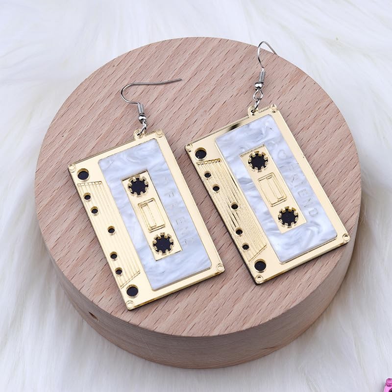 - CASSETTE NECKLACE: Has a nice retro 80's vibe to these earrings. Make a statement in these pretty earrings.