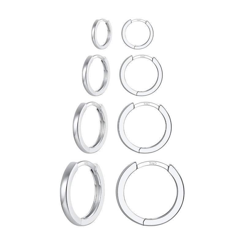 4 Pairs Silver Plated Sterling Silver Hoop Earring Set Small Huggie Hoops for Women Cartilage and Helix Piercings Pack in Sizes 8mm, 10mm, 12mm, 14mm