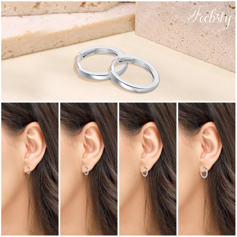 - Silver Hoop Earrings in Multiple Sizes: These cartilage hoops are 8mm (0.31 in), tiny hoops are 10mm (0.39 in), small hoops are 12mm(0.47 in), and 14mm(0.55 in). Their thickness is 1.8mm(0.07 in) with gauge of 0.8mm(0.03 in). These lightweight, hypoallergenic silver cartilage hoop earrings are perfect for women.