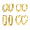 4 Pairs Small Chunky Hoop Earrings Set 14K Gold Plated Small Huggie Hoop Earrings Hypoallergenic Polished and Cubic Zirconia Oval Heart Hoops for Women