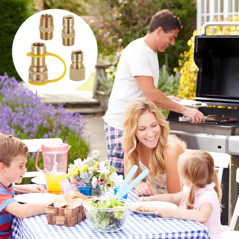 4 Pcs 1/2 Inch Natural Gas Quick Connect Fittings Kit, Brass Gas Connectors, Leak-Proof, for Home, BBQ, and Camping Use, Includes Teflon Seal Tape and Dust Caps
